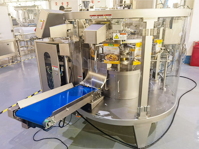 腌漬肉滑自動包裝機是通過U型料箱進行均勻攪拌,使其肉料更加的均勻,核心部分采用的是PLC可編程控制,它能夠?qū)崟r采集物料信息的重量,并通過軟件傳輸給顯示屏幕,讓用戶更加清晰了解生產(chǎn)過程,當信息設(shè)定達到與預(yù)設(shè)重量信息一致時,料箱停至供料,給袋機將旋轉(zhuǎn)至封口處,通過恒溫加熱的方式,快速完成封口條件,在冷卻后快速定型,然后由腌漬肉滑自動包裝機的輸送帶送出,完成全部的生產(chǎn)過程。