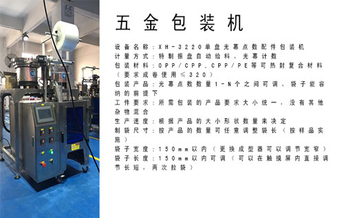 應用于各種五金螺絲包裝,電子零件包裝,電子元器件包裝及食品包裝。螺絲包裝機可單款產(chǎn)品包裝,可多款產(chǎn)品混合包裝,包裝數(shù)量包裝袋長度可自由調(diào)節(jié),自動送料、自動計數(shù)、自動封口、自動包裝.五金件自動包裝機還應用于各種顆粒狀食品等各種行業(yè)實現(xiàn)自動化計數(shù)包裝,檢測,打標等,為適應于不同工件的上料需求設計制作了不同型號.為專業(yè)化,標準化的生產(chǎn)進一步提高了產(chǎn)品的穩(wěn)定性,一致性,降低了成本,為出優(yōu)質(zhì)產(chǎn)品提供了可靠的保證。