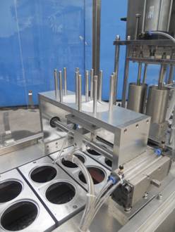 杯盒灌裝封口機(jī)從送杯、充填、液位控制、放蓋、兩次封口、推杯、輸送為全自動(dòng)作業(yè)。