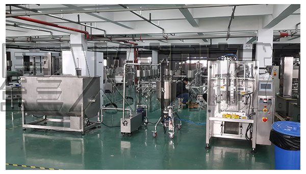全套全自動(dòng)火鍋醬料包裝機(jī)械車間展示圖