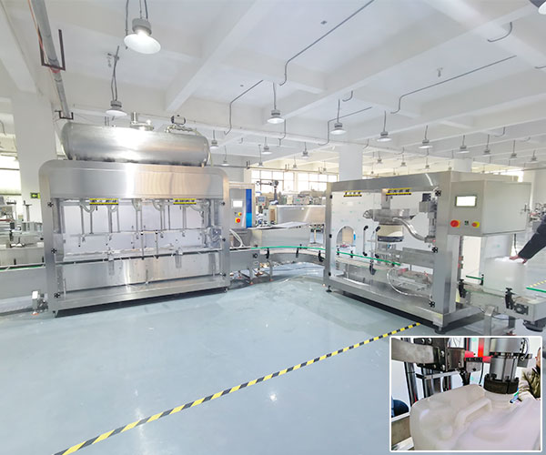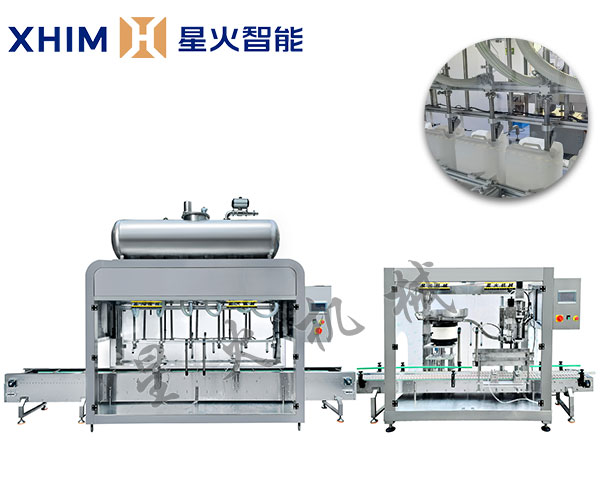 全封閉稱重灌裝流水線是針對(duì)于5-25公斤大規(guī)格的鐵桶、塑料桶等容器的自動(dòng)化灌裝,大型定量灌裝生產(chǎn)線整合了自動(dòng)上桶、自動(dòng)定位、稱重灌裝、自動(dòng)上蓋、貼標(biāo)噴碼等生產(chǎn)工序,全封閉稱重灌裝流水線因高精度、全流程封閉式、智能管控的核心優(yōu)勢(shì),突破了大桶物料的高精度灌裝,大型定量灌裝生產(chǎn)線以高精度電子稱作為定量基礎(chǔ),實(shí)時(shí)檢測(cè)灌裝過程中的重量變化,動(dòng)態(tài)調(diào)節(jié)灌裝速度,確保每桶凈含量高度一致輸出。