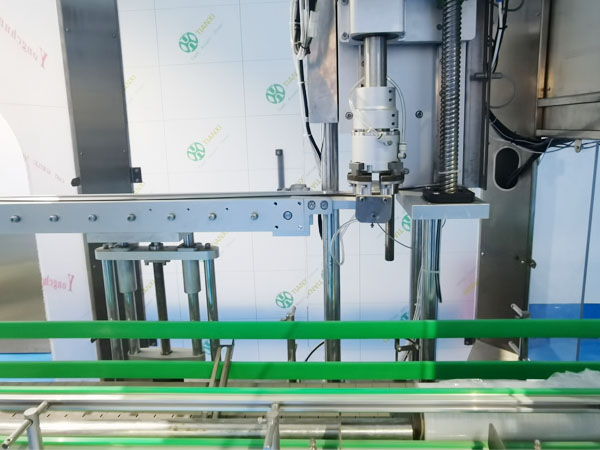 大型旋蓋機(jī)械是一款高度自動(dòng)化的機(jī)械設(shè)備,它可以根據(jù)自身的機(jī)械性能與灌裝機(jī)、輸送機(jī)、貼標(biāo)機(jī)等形成聯(lián)動(dòng)生產(chǎn)線,塑料桶自動(dòng)旋蓋機(jī)的工作方式非常的智能,它通過(guò)傳送帶系統(tǒng)帶有商品的塑料桶抵達(dá)旋蓋工位后,以定位器將塑料桶固定在旋蓋位置,此時(shí),塑料桶自動(dòng)旋蓋機(jī)的旋蓋頭開始下降并抓緊蓋子,然后按照工作人員設(shè)定的扭矩值旋轉(zhuǎn)至指定的緊固程度,在整個(gè)生產(chǎn)過(guò)程當(dāng)中,大型旋蓋機(jī)械會(huì)根據(jù)實(shí)際情況自動(dòng)調(diào)整生產(chǎn)速度和力度以確保極佳的生產(chǎn)效果。