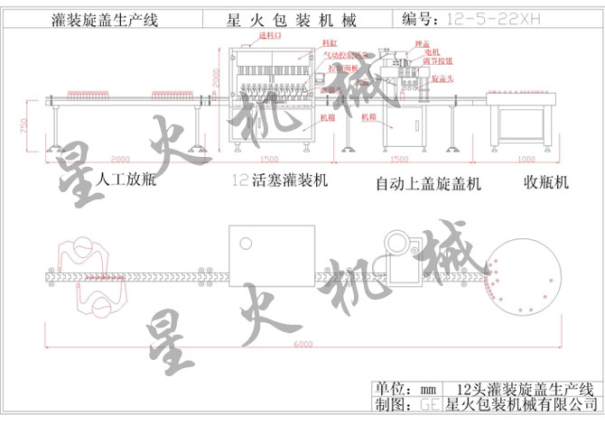 理瓶2頭灌裝真空旋蓋貼標噴碼收瓶及開箱封箱打包生產(chǎn)線