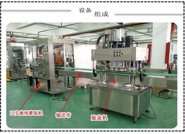 1、該生產(chǎn)線具有12個灌裝頭(可根據(jù)客戶的實際生產(chǎn)需求增減),灌裝精準,不滴漏